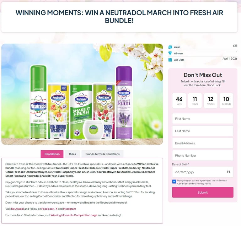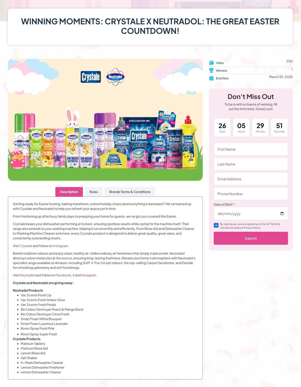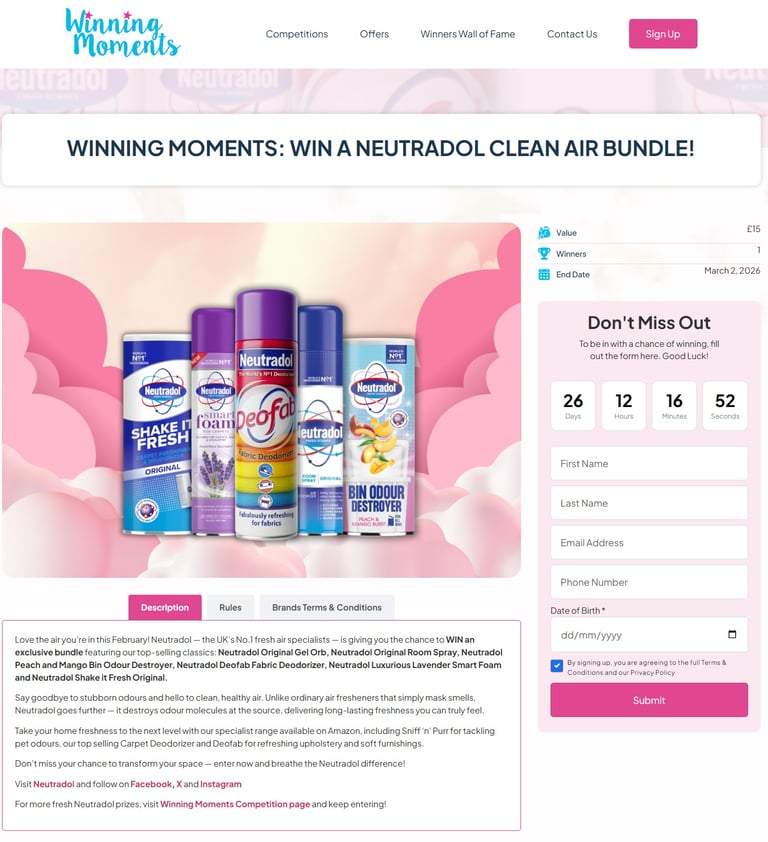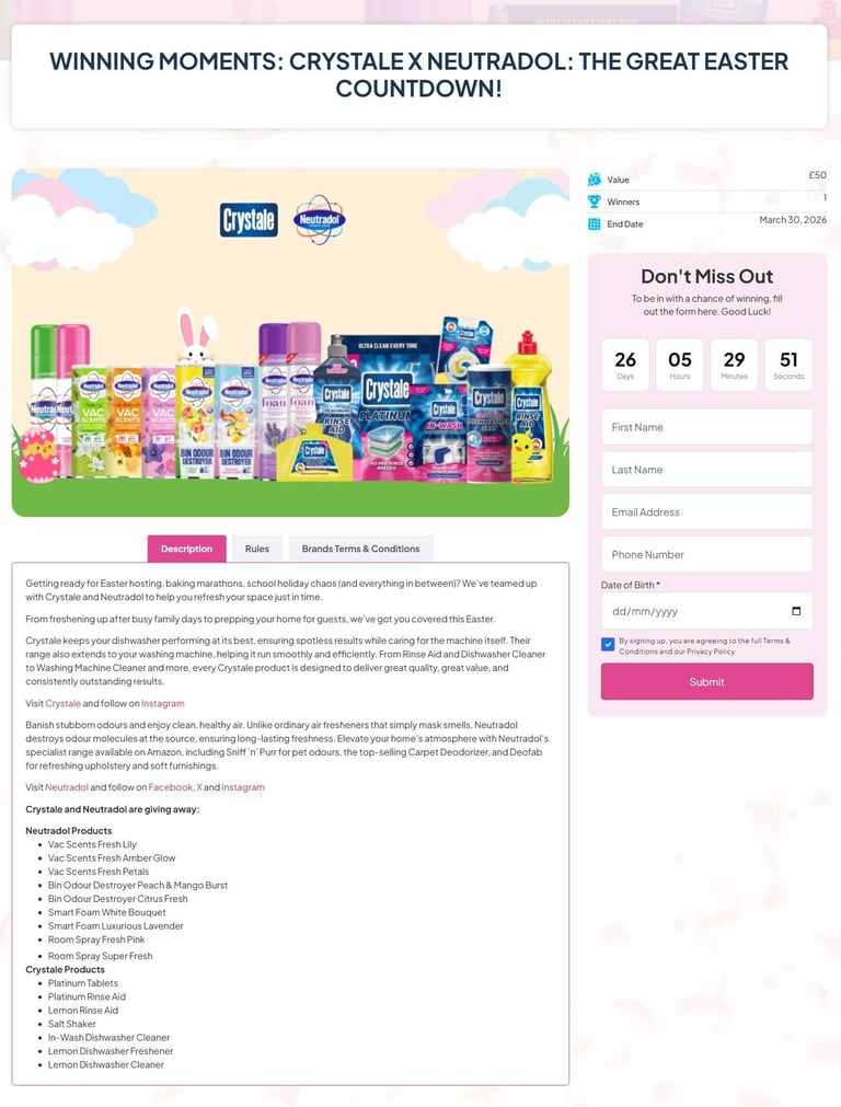 Promoted across: Winning Moments website, Neutradol and Crystale social channels and newsletter
