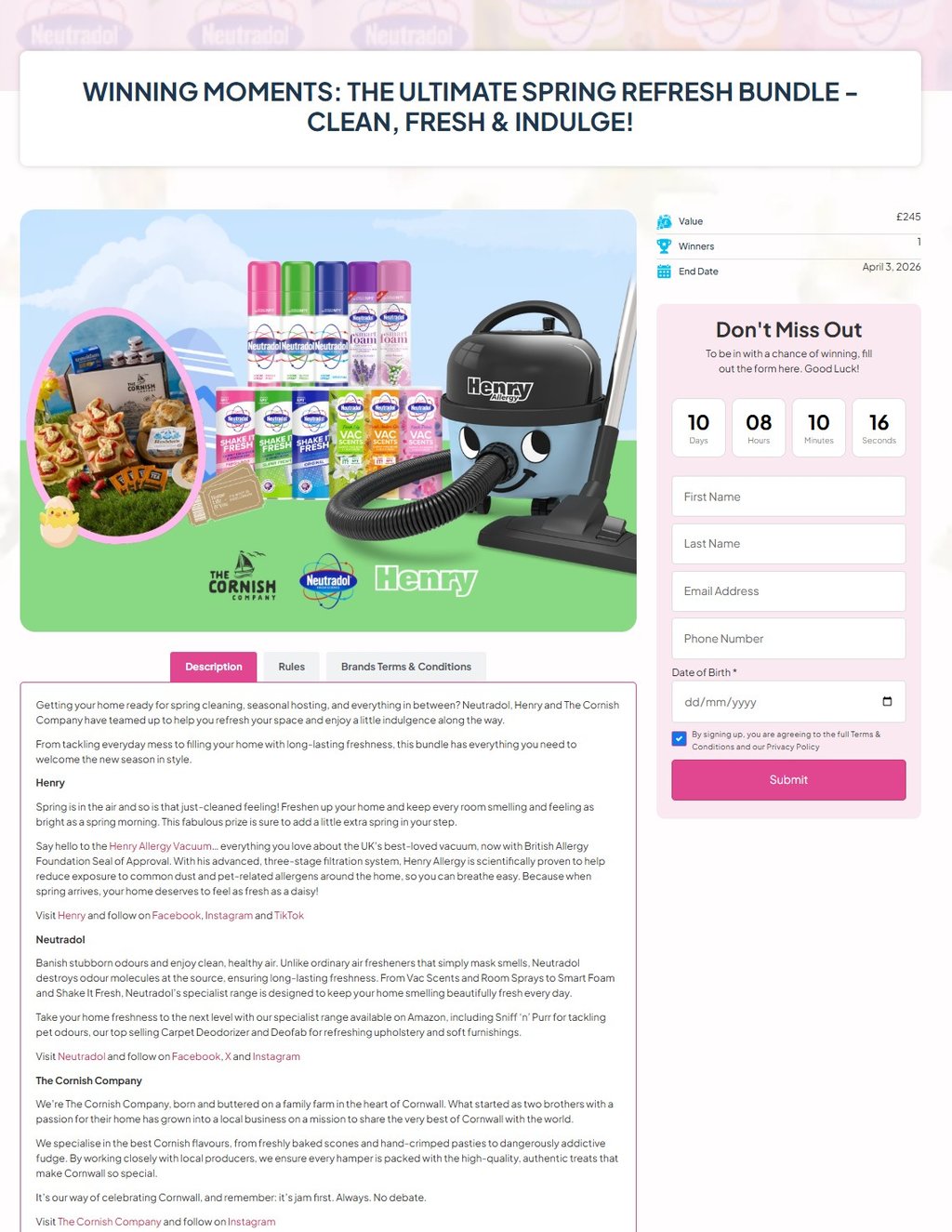 Promoted across: Winning Moments website, Neutradol and Henry social channels and newsletter