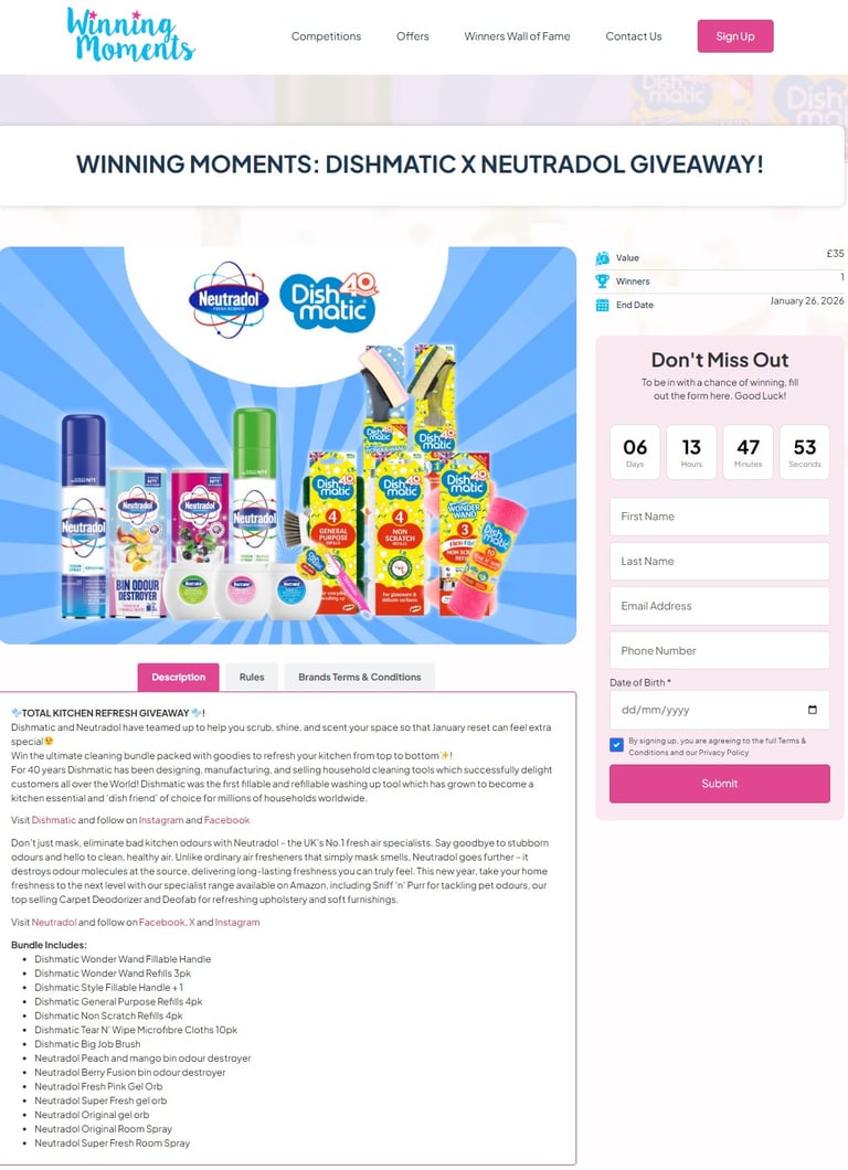 Promoted across: Winning Moments website, Neutradol and Dishmatic social channels and newsletter