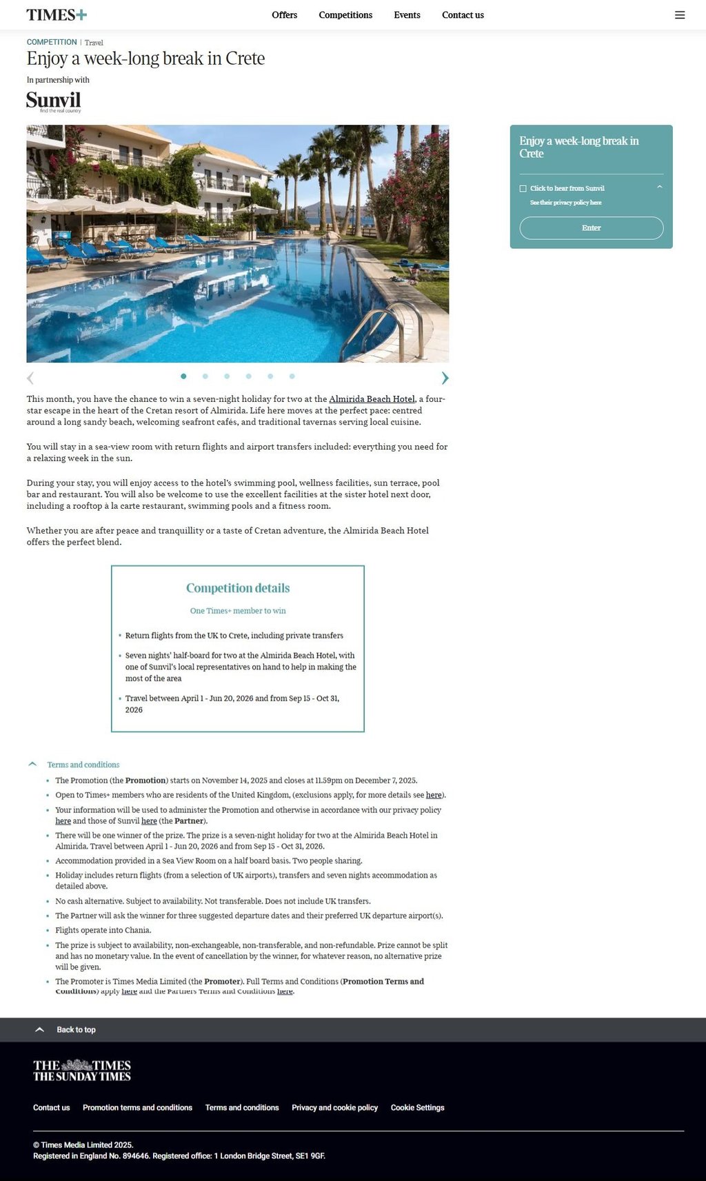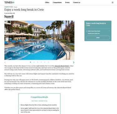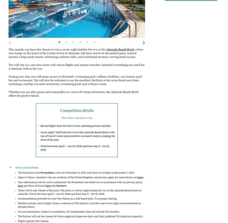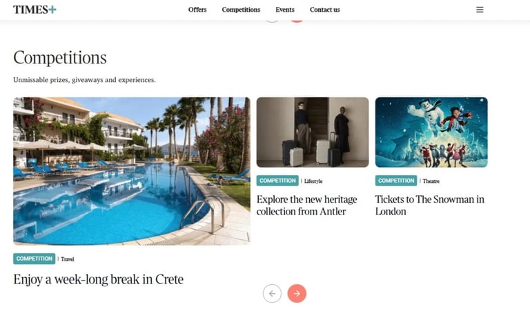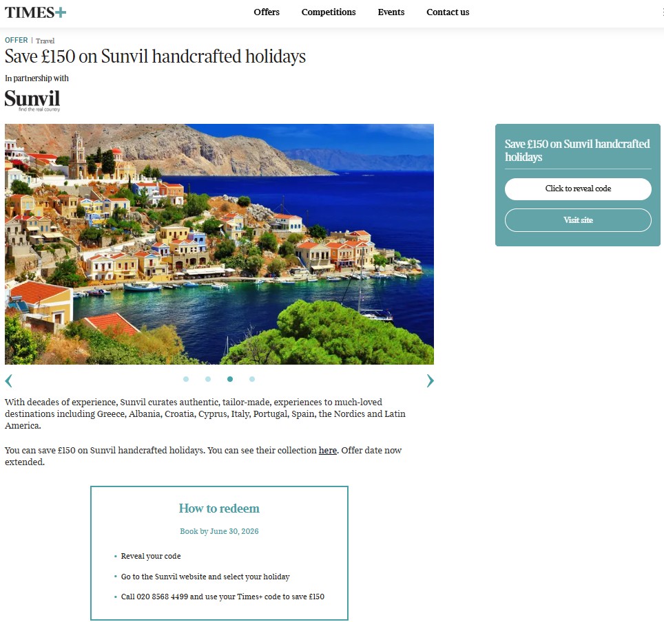 Promoted across: Times+ website - Offers section and Times Travel Newsletter