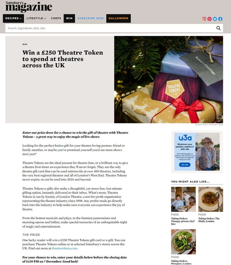 Theatre Tokens - Sainsbury's Print & Online